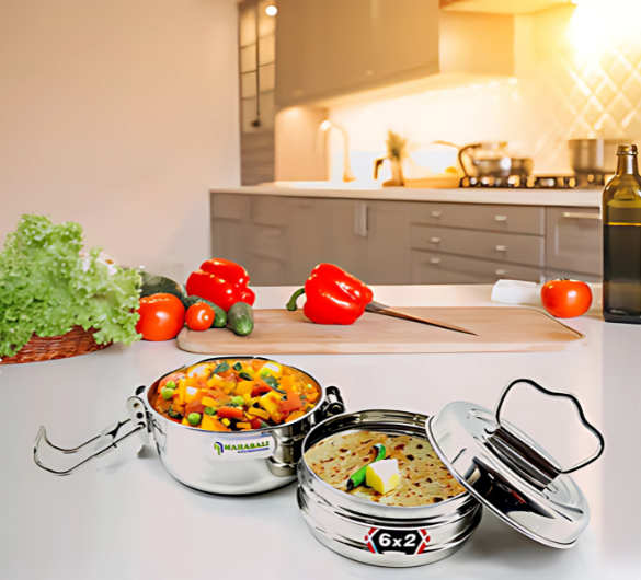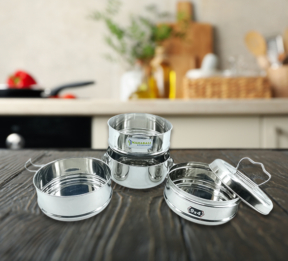 Mahabali Stainless Steel Flat Canister Neelam Puri Dabba With See Through Lid
