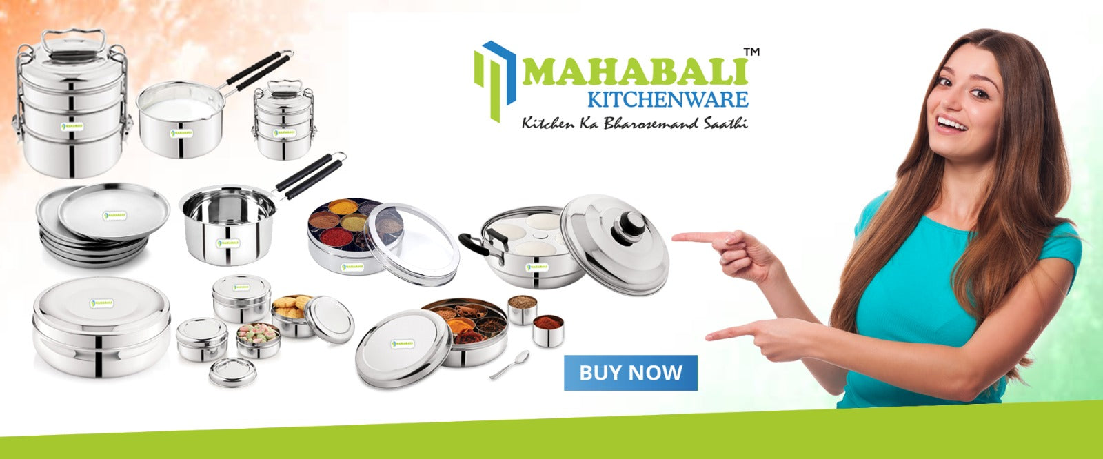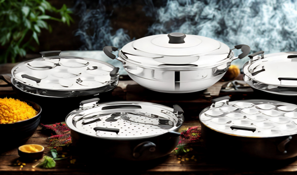 Mahabali Stainless Steel Nano Multi Kadai , Flat Bottom with 5 Plates - 2 Idli Plates , 2 Dhokla Plates and 1 Patra Plate , All In One Multi Purpose Kadai , Gas Base, Silver