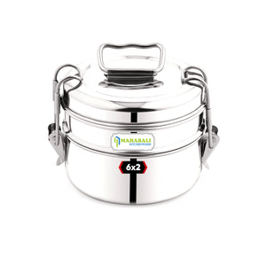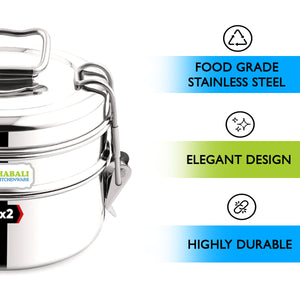 Mahabali Stainless Steel Lunch Box/Tiffin with Locking Clip, 2-Tier Container, Hot & Cold Leak-Proof, Compact & Durable, Perfect for Office, School, Picnic and Travel, Silver