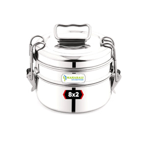 Mahabali Stainless Steel Lunch Box/Tiffin with Locking Clip, 2-Tier Container, Hot & Cold Leak-Proof, Compact & Durable, Perfect for Office, School, Picnic and Travel, Silver