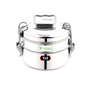 Mahabali Stainless Steel Lunch Box/Tiffin with Locking Clip, 2-Tier Container,  Hot & Cold Leak-Proof, Compact & Durable, Perfect for Office, School, Picnic and Travel, Silver