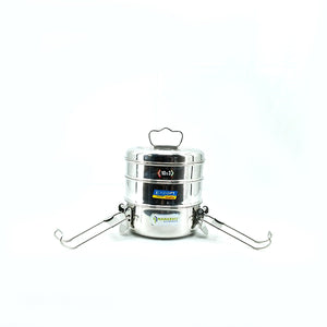 Mahabali Stainless Steel Travelling Lunch Box/Tiffin with Locking Clip, 3-Tier Container, Hot & Cold Leak-Proof, Compact & Durable, Perfect for Office, School, Picnic and Travel, Silver