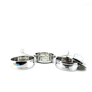 Mahabali Stainless Steel Travelling Lunch Box/Tiffin with Locking Clip, 3-Tier Container,  Hot & Cold Leak-Proof, Compact & Durable, Perfect for Office, School, Picnic and Travel, Silver
